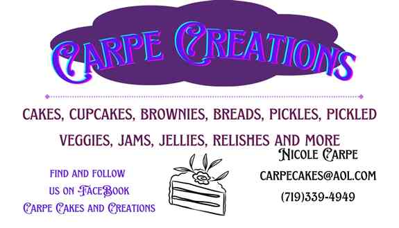 Carpe Creations in a female veteran owned home based business. I’m a certified pastry chef and makes specialty cakes and cupcakes. I also make assorted pickled veggies, relishes, jams and jellies. Many flavors are seasonal and all items a locally sourced from farms and gardens in and near Colorado Springs.Product Images: